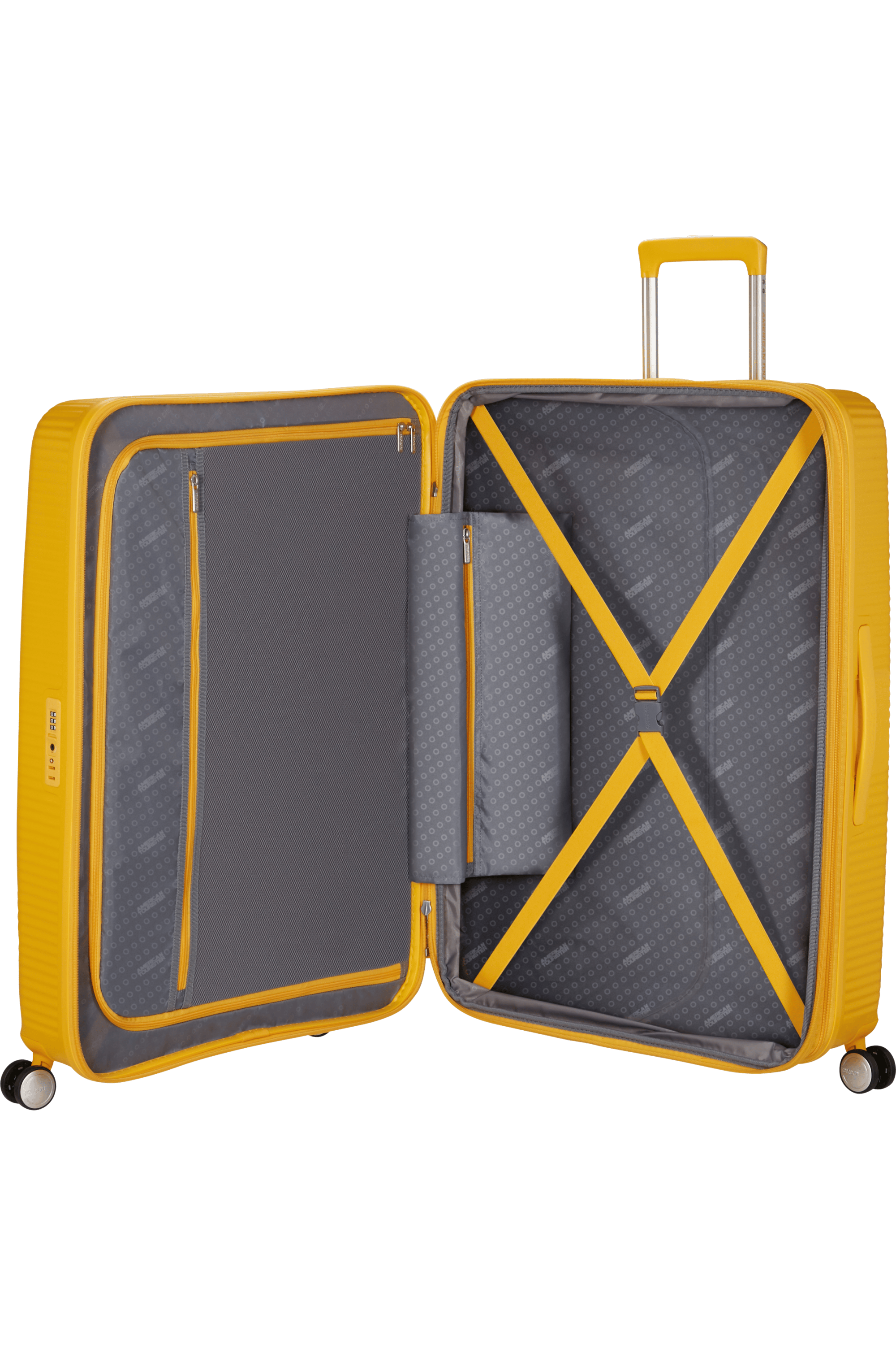 Invändigt finns en smart tvådelad packlösning med korsremmar och meshfickor som håller kläder och accessoarer organiserade under resan. De fyra spinnerhjulen ger stabil och tyst rullning, och TSA-godkänt lås säkerställer trygg passage genom internationella flygplatser. Soundbox 80 cm är ett tåligt, rymligt och stilrent val för dig som reser mycket och vill ha en väska som klarar allt.