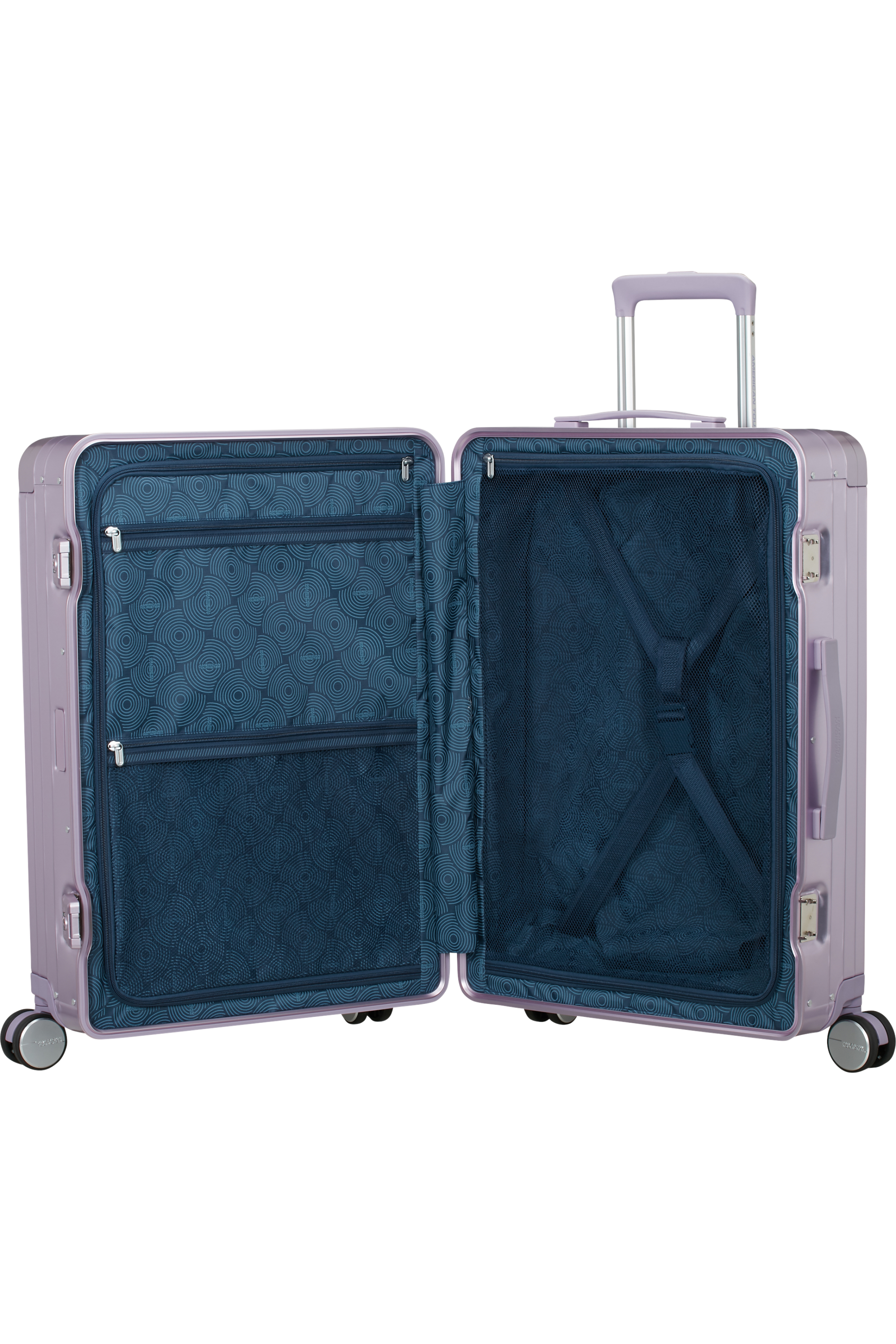 American Tourister Soundbox Alu 68 cm kombinerar exklusiv design i aluminium med smarta resfunktioner. Med sin robusta konstruktion och stilrena finish är den både tålig och elegant, perfekt för dig som vill resa tryggt och med en premiumkänsla. Storleken på 73 liter gör den till en rymlig mellanstor resväska, idealisk för 1–2 veckors resor.